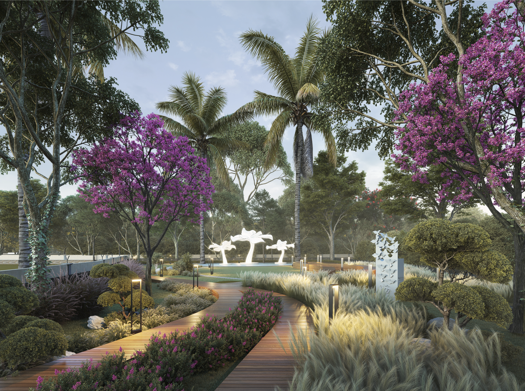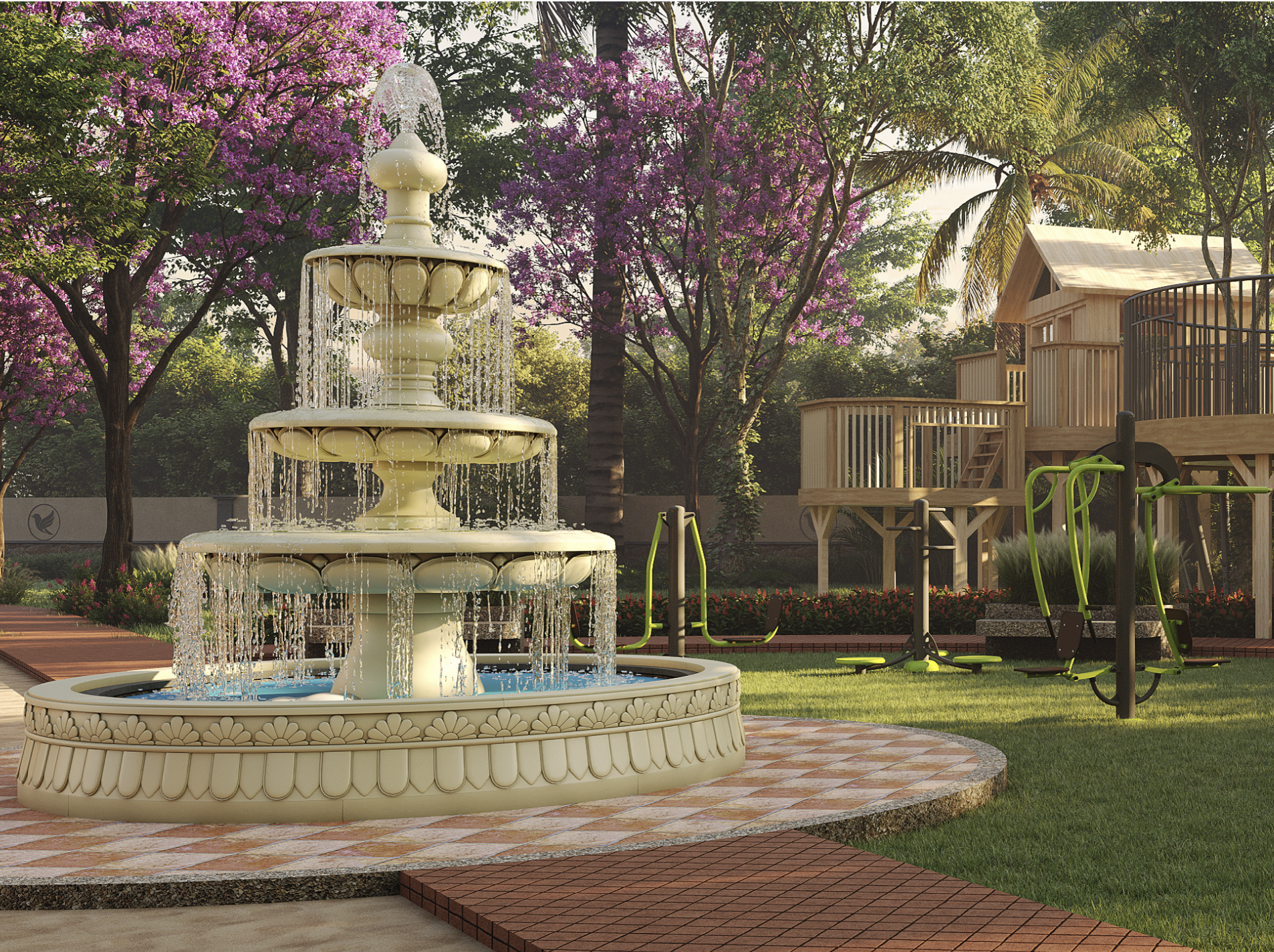 The fountain is designed as a graceful centerpiece that enhances the visual appeal of the project. With flowing water and elegant design, it creates a refreshing atmosphere, adding movement, tranquility, and a sense of luxury to the township’s open spaces and common areas.