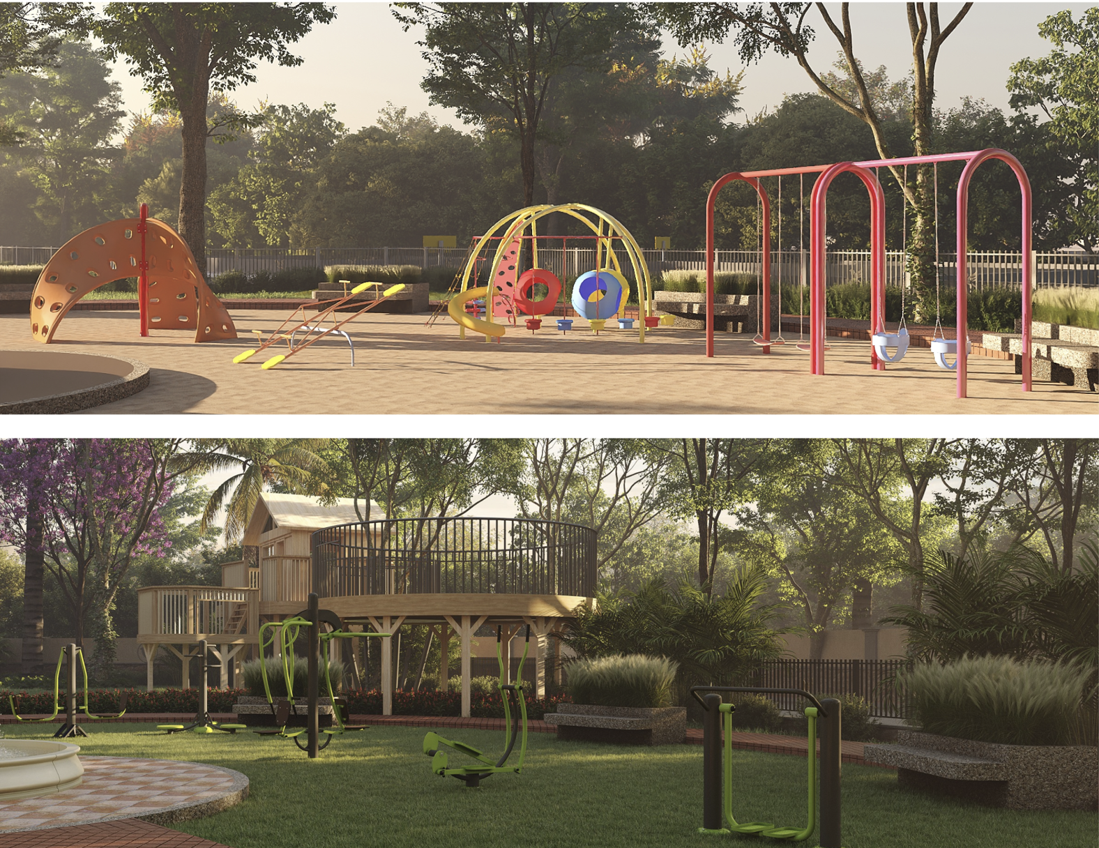The kid's play area and open gym areas are thoughtfully designed to support healthy, active lifestyles for all age groups. While children enjoy a safe and engaging play environment, adults can focus on fitness in the open-air gym, creating a balanced space that promotes wellness, energy, and family bonding within the community.