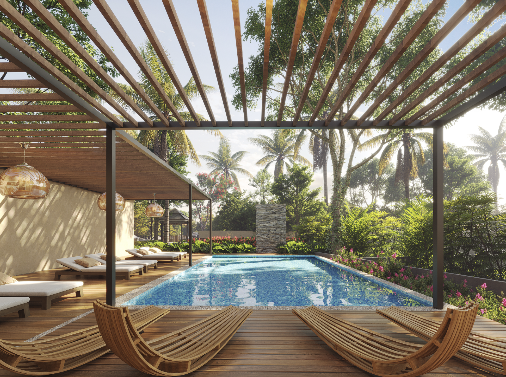 Our pergolas are carefully designed to provide shaded open-air spaces that encourage relaxation and social interaction, blending natural elements with elegant architecture to create comfortable spots for conversations, leisure, and quiet moments.